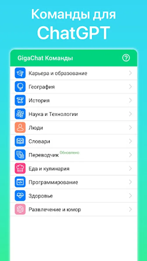 We keep track of new commands (prompts) for the Giga Chat assistant and try to quickly add them to the "Commands for Giga Chat" application.