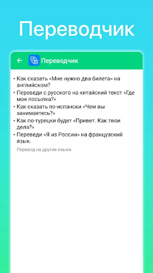 This "Commands for Giga Chat" application does NOT include the Giga Chat helper itself. To use the GigaChat virtual assistant, you will need to download the "Giga Chat" application.
