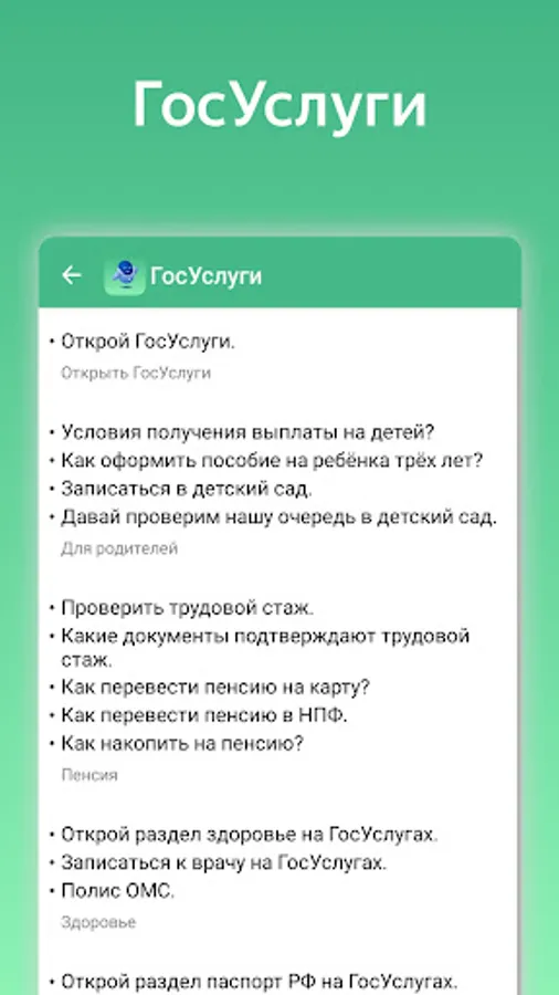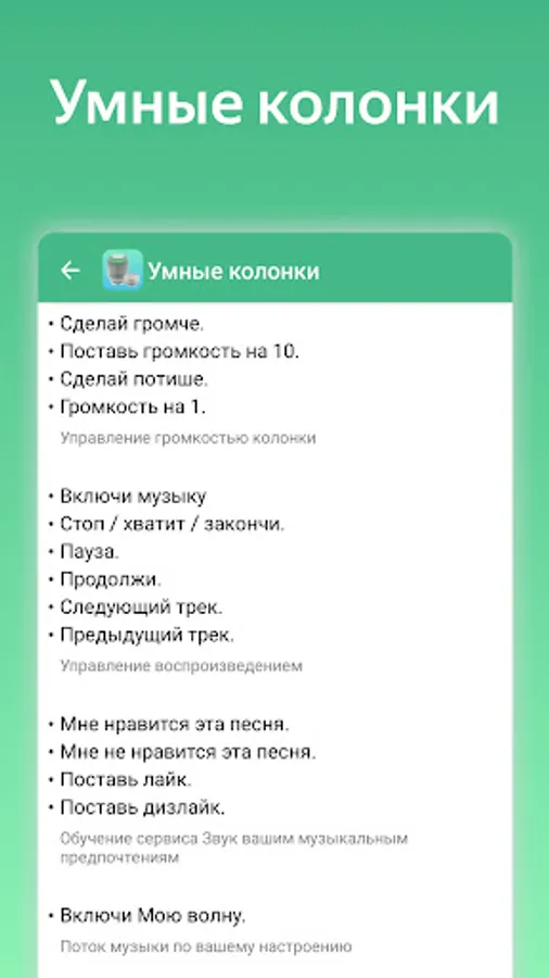 We monitor new commands for Salyut voice assistants and try to quickly add them to the “Commands for Sber Salyut” application.