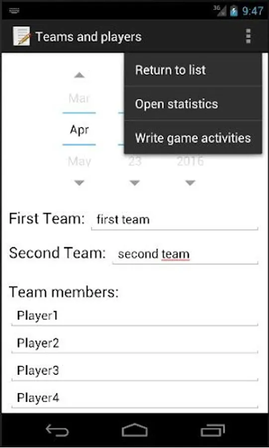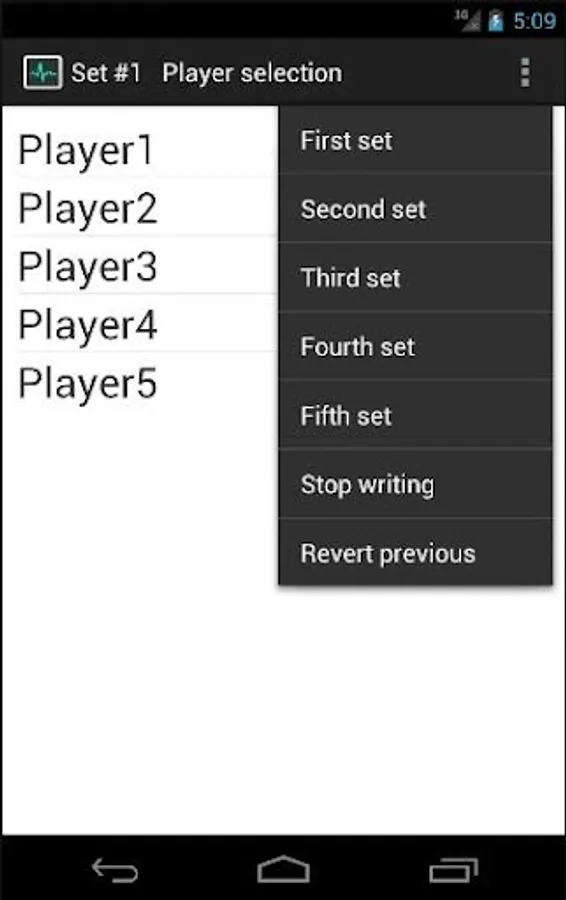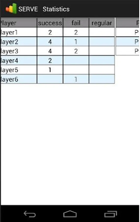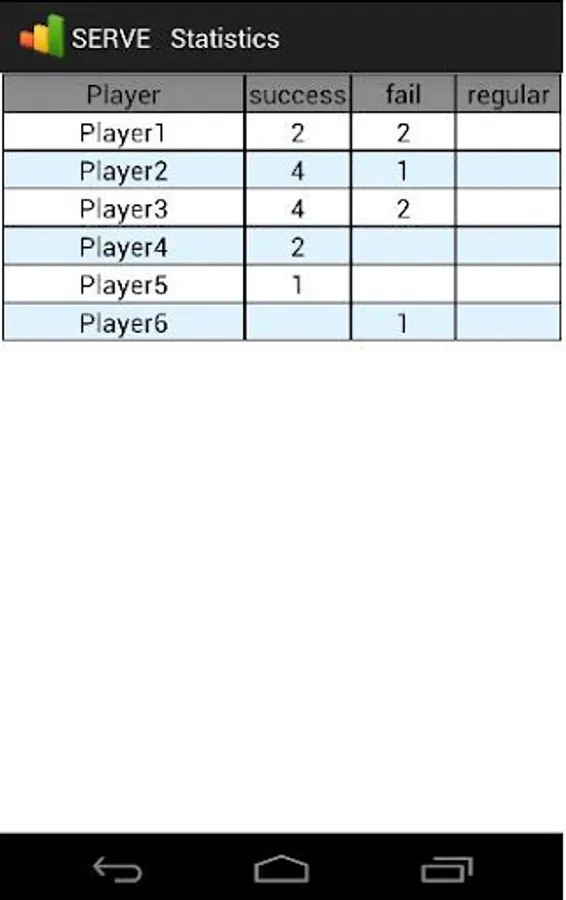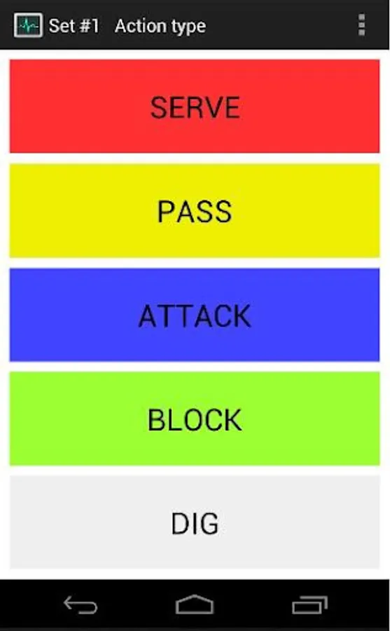 Application allows write actions of volleyball players during volleyball game (serve, attack, block, pass, dig) and result of each action (success, fail, regular).