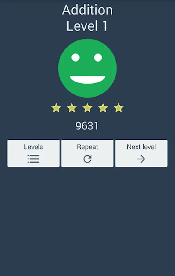 In first mode you are able to select which math operation you would like to train like addition, subtraction, multiplication and etc. After selecting appear a list of levels that you should to pass. Each level has some time and some number of questions. every question has multiple choice. When level is completed you can see your score.