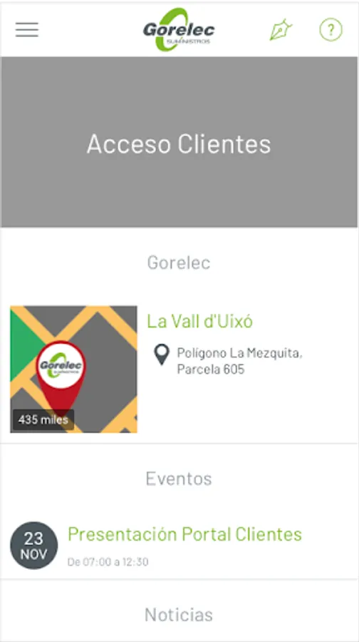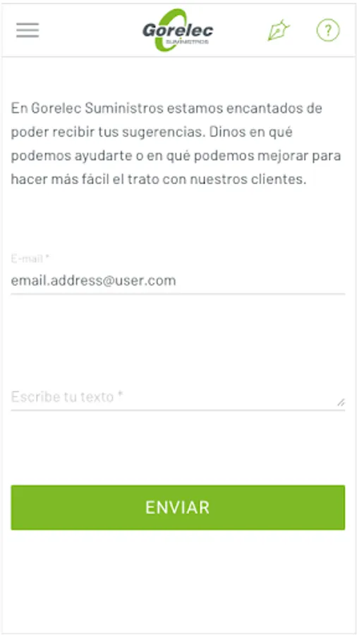 Corporate application and with access to clients of Gorelec Suministros, S.L.