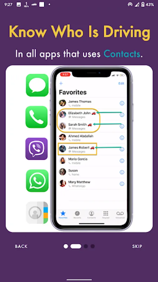 Know who is driving in all Apps that use contacts: iMessage, Phone, Contacts, WhatsApp, Viber ... etc