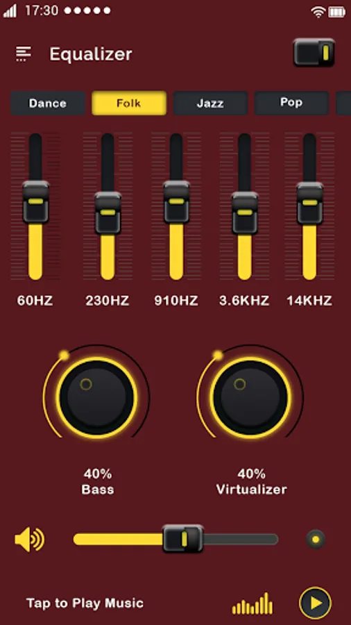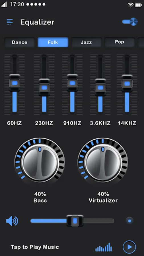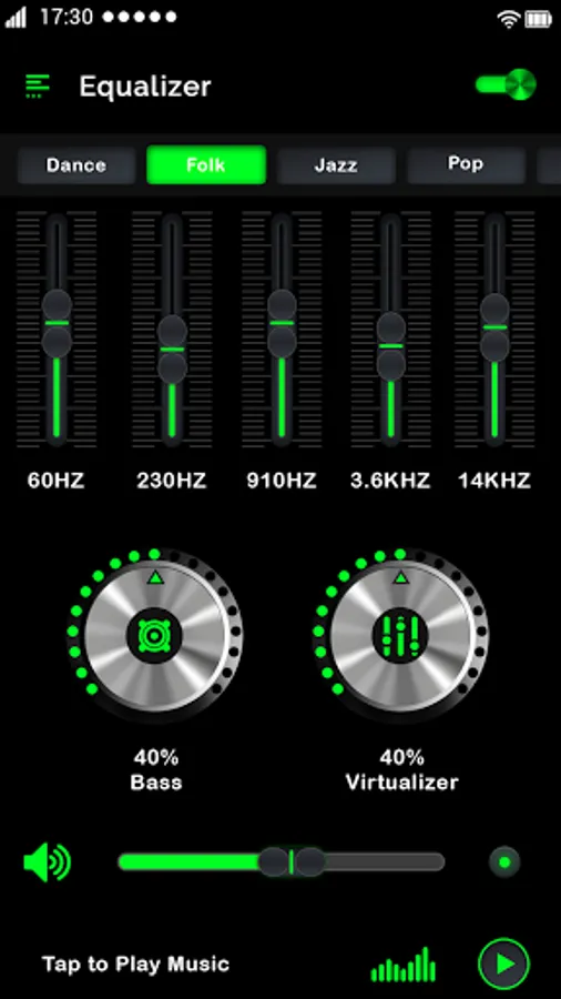 Equalizer - Bass Booster, Volume Booster lets you adjust sound effect levels so that the user can get the best out of your Music or Audio play coming out of your smartphone. Virtualizer produces quality sound in a Digital Surround Support.