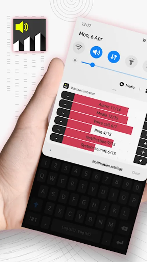 - Adjust Music, Ring, Notification and Alarm volume with one step