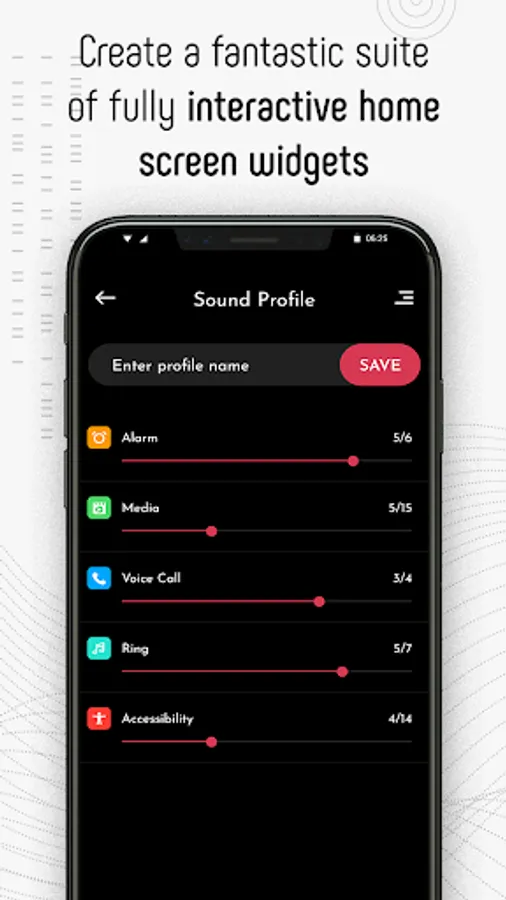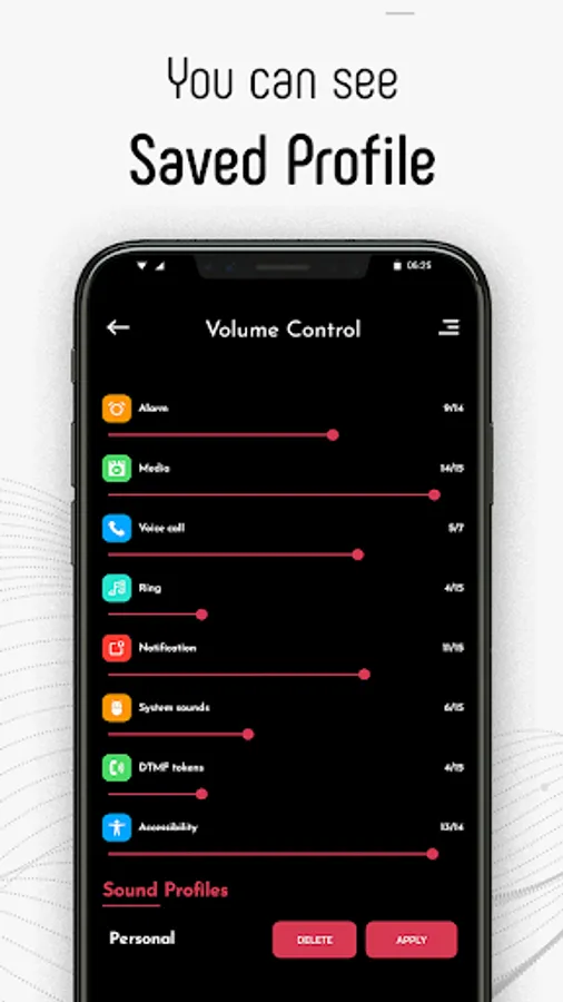 - Adjust separate volume control for Music, Ring, Notification and Alarm volume in application