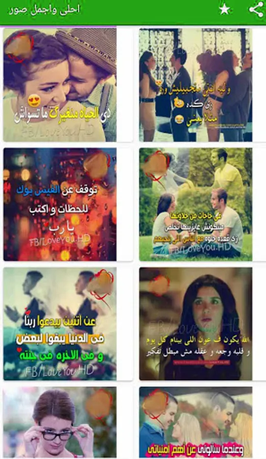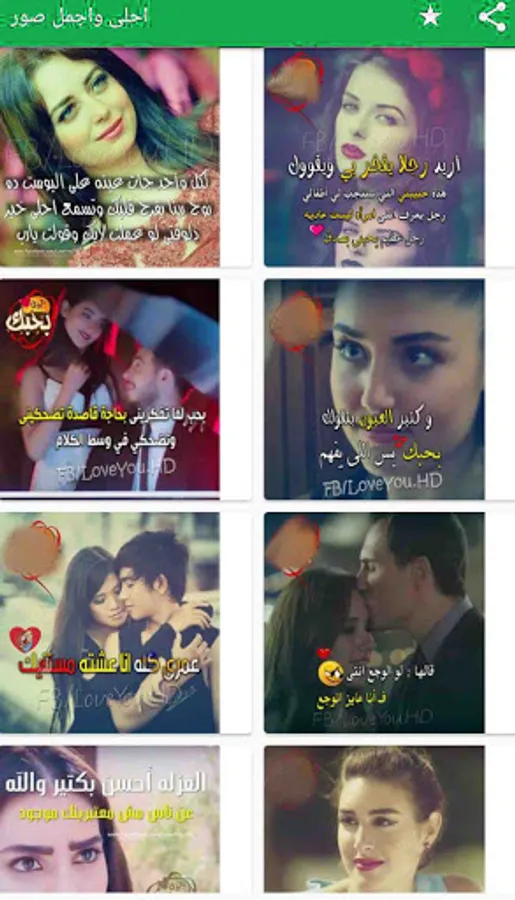 This application contains the most wonderful and most beautiful pictures of love and romantic cases and messages written on it love phrases and sad poems, and this application enables you to save the images in your phone as well.