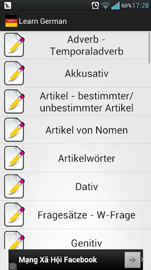 “German Exercise” is a free application to support everyone in achieving foreign language certificates of Euro like A1, B1, B2, C1… ,German exams. It helps to review knowledge of German accordingly via quizzes which have the same formalities as official exams by Tests.