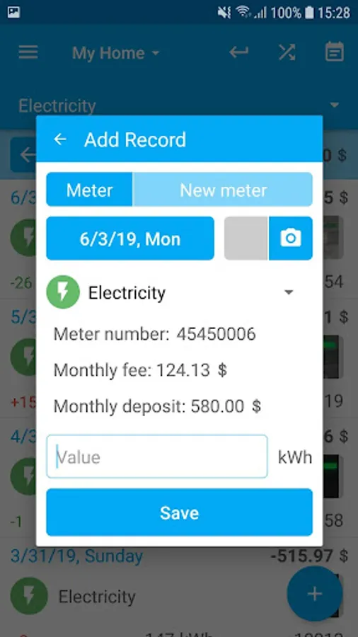 Record month-end value of Meter households into your mobile application and you will have a useful tool which helps you track of your consumed units.