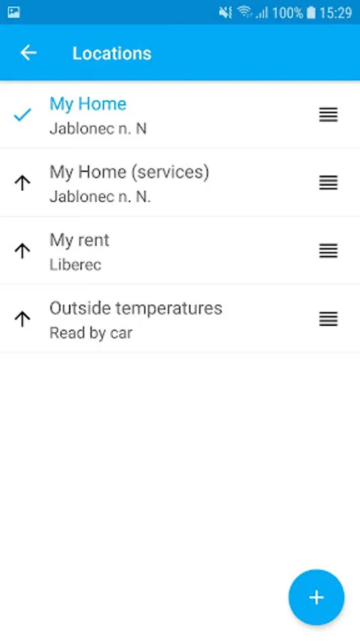 The basic categories are: GAS, HOT WATER, COLD WATER and ELECTRICITY. If necessary, there is section Meters for additional measurements and section Locations for further offtake points. In Price section it is possible to set price for unit or month, advance payment and coefficient for units conversion (e.g. for gas billing).
