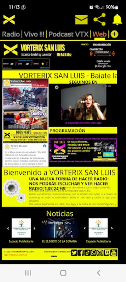 Vorterix San Luis is the first Multimedia in San Luis, with FM broadcast (Merlo 94.5 and V.Mercedes 103.3), Audio streaming and Video Streaming.