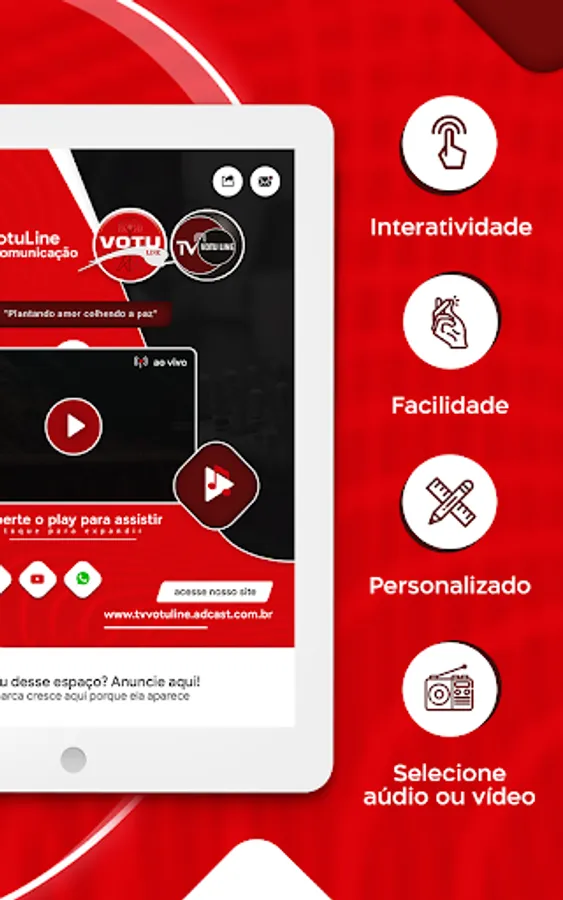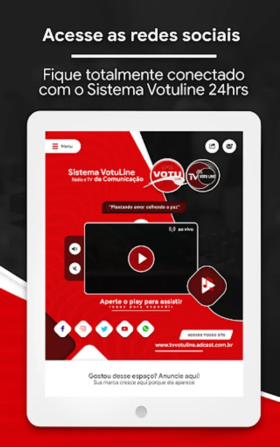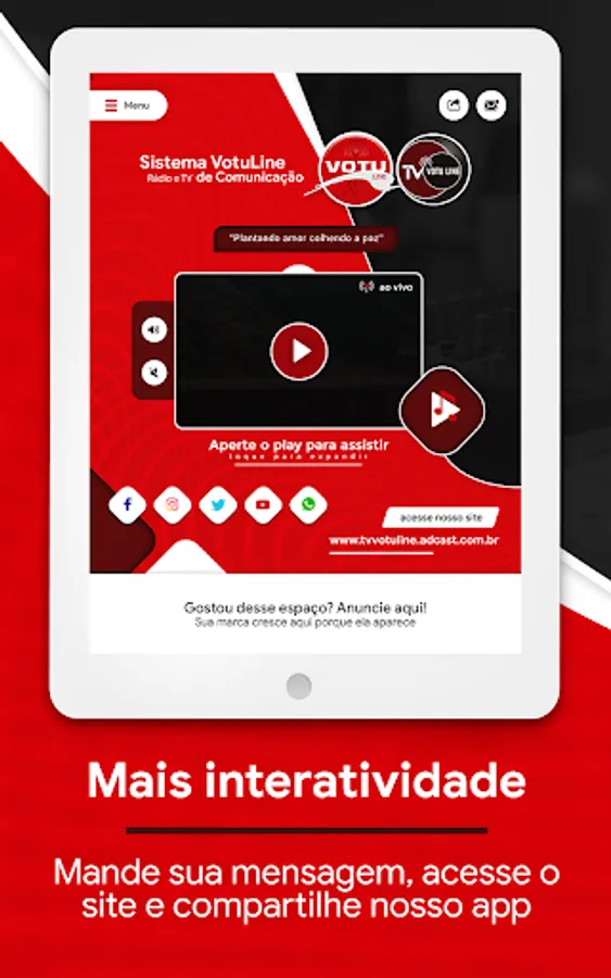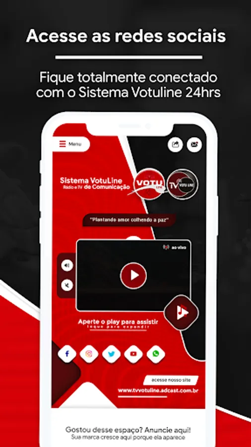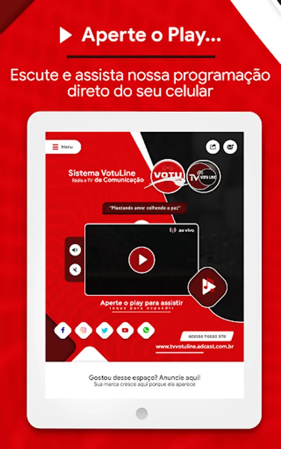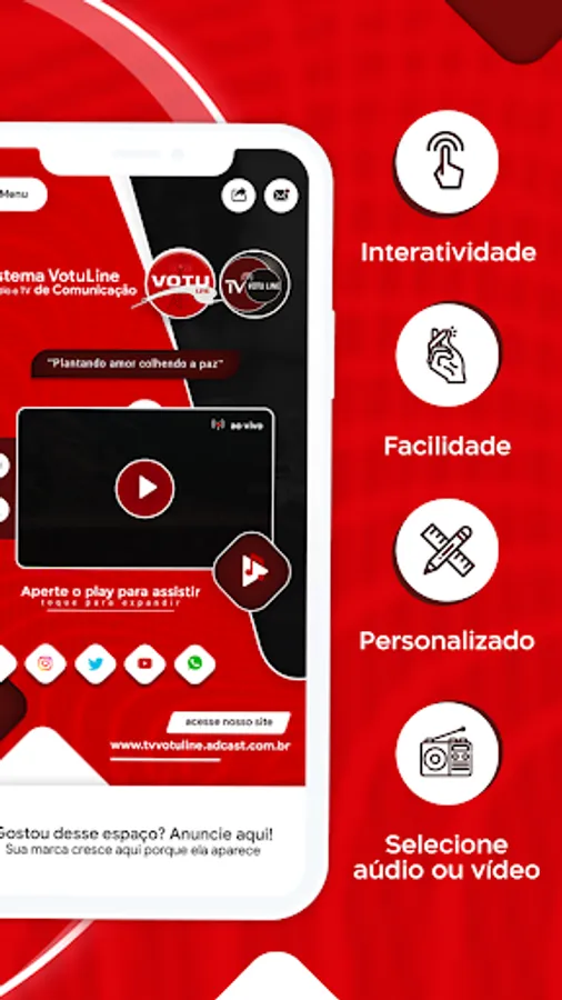 RADIO AND TV VOTULINE IS LOCATED IN VOTUPORANGA INTERIOR OF SÃO PAULO BRAZIL IT HAS A PROGRAM WITH THE OBJECTIVE OF TRANSFORMING SOCIETY, IMPROVING ITS QUALITY OF LIFE.