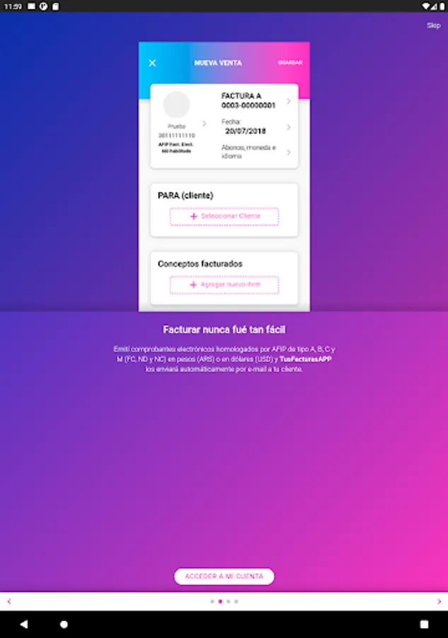 With TusFacturasAPP, you will know a new way to manage your company, easy, fast and remotely.