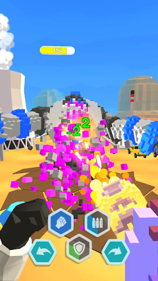 Start the battle with destruction, choose the trajectory of the blow, attack enemies with various weapons, arranging maximum destruction.