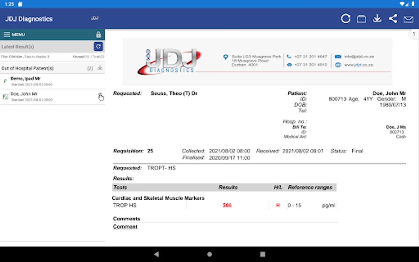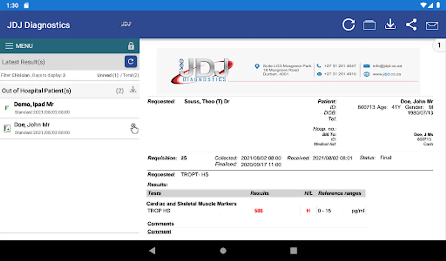 JDJ Diagnostics' mobile App enables clinicians to gain fast access to patients' latest test results.