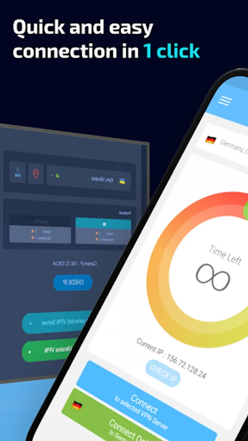+ For your convenience, we introduced two separate connection buttons. The first connects to a selected VPN in the list. The second connects directly to a French VPN. It's that simple. In case you need to change IP address, just select a server in some other country and establish a connection. In case you need to get a French IP address, just connect to a French VPN server in one click.