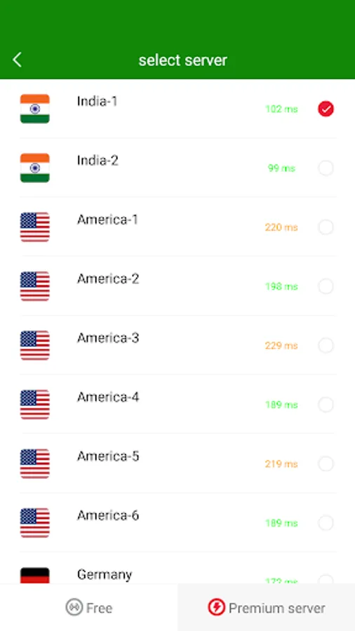 -- Our not only have servers in India, but the app also has servers in all key locations around the world, such as America, Germany, England, Netherlands, Canada, Australia, Japan, Korea, Singapore, Hongkong, Thailand.