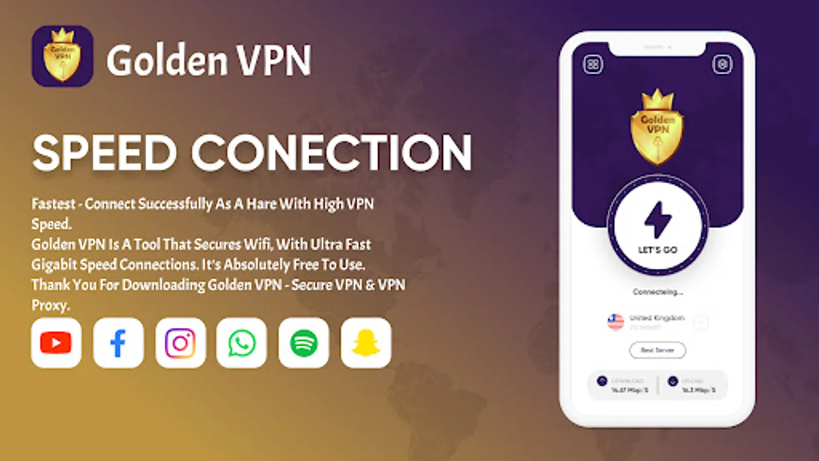 Download Golden VPN: Hotspot Proxy VPN right now for an unlimited free VPN proxy service you can rely on! Using this free online VPN, you will be able to browse the web securely and privately. You can use the best free VPN service available for Android devices.