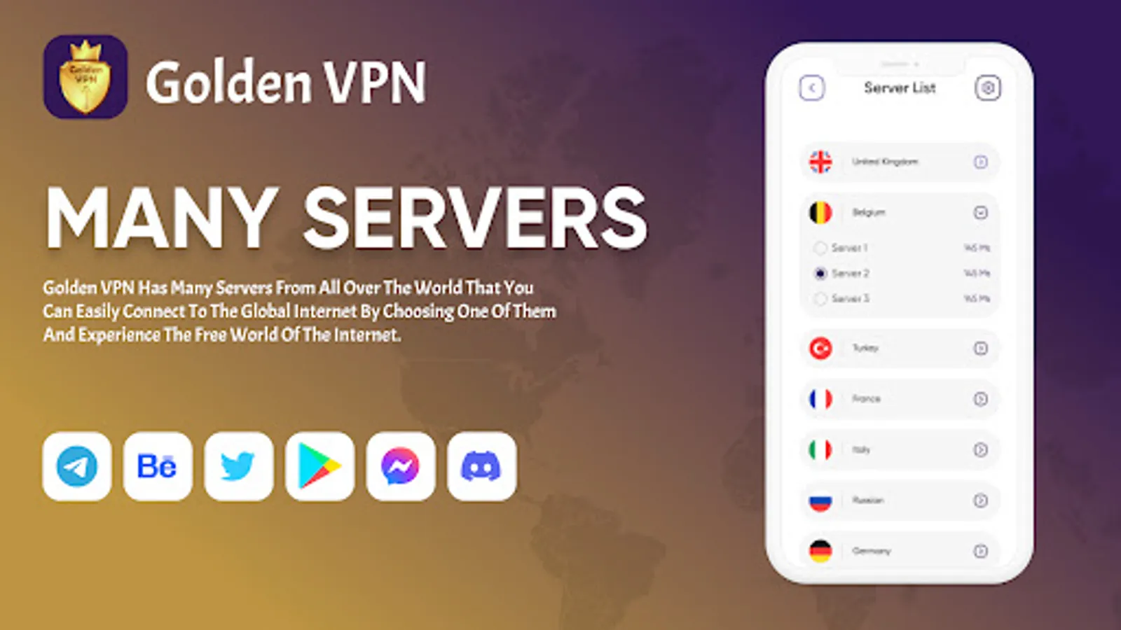 • You will be able to choose from a number of VPN streaming servers when you use Golden VPN. The best free servers for your streaming service or website can be found no matter where you are in the world, and you can choose from them as you see fit.