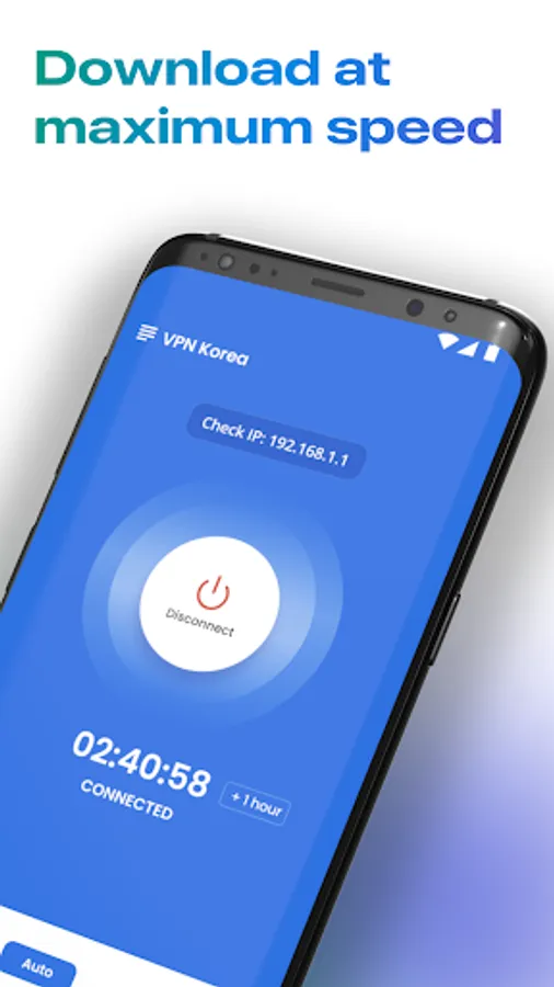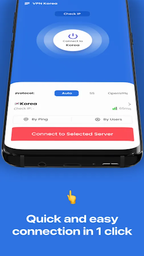 + For your convenience, we introduced two separate connection buttons. The first connects to a selected VPN in the list. The second connects directly to a Korean VPN. It's that simple. In case you need to change IP address, just select a server in some other country and establish a connection. In case you need to get a Korean IP address, just connect to a Korean VPN server in one click.