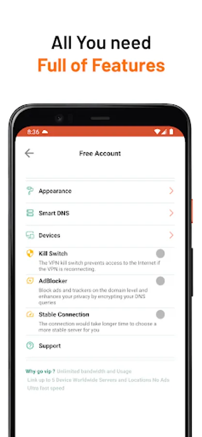 **2. Global Server Coverage** - Access over 5000+ servers across 60+ countries. Connect to any server at any time, giving you a truly global internet experience.
