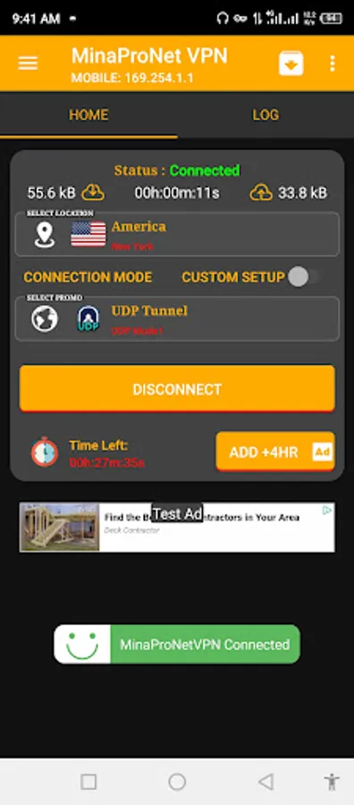 A single tap of the Connection button is all it takes to start a secure and stable VPN connection, For free unlimited access to the internet browsing.