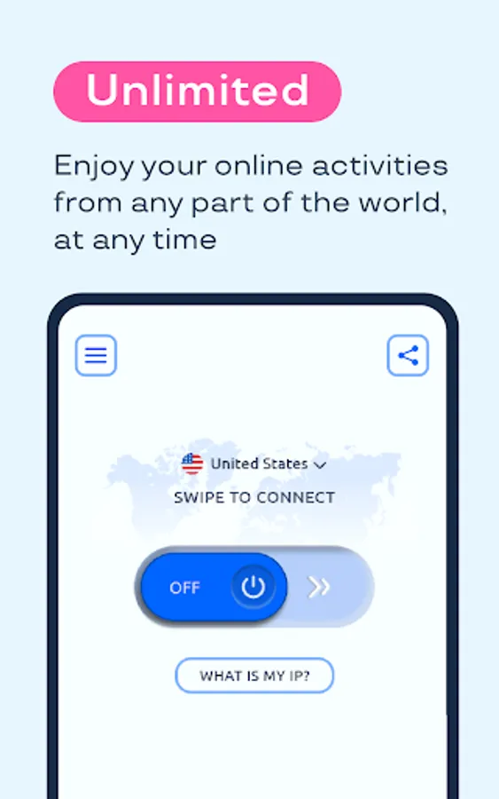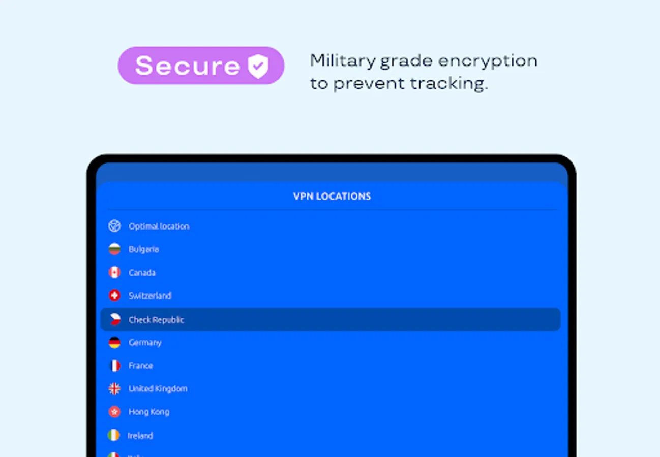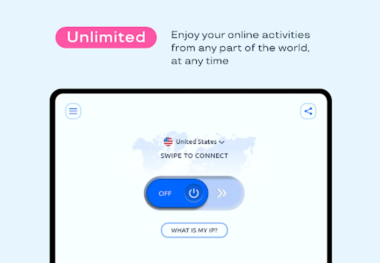 Select the fastest VPN server to connect and access any site or app across the globe.