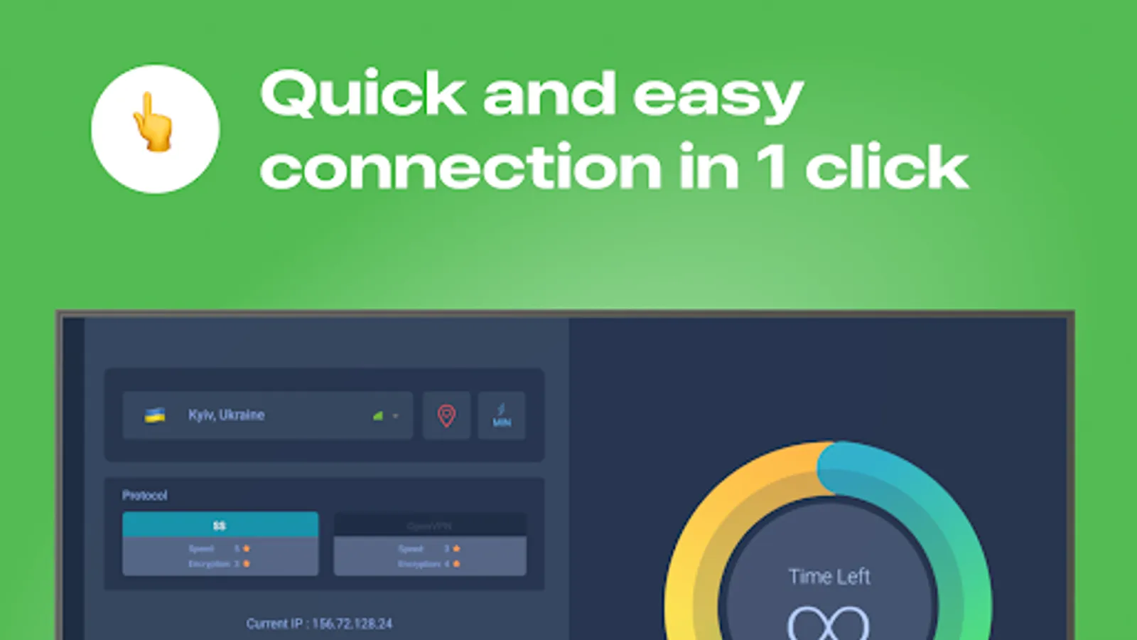 + For your convenience, we introduced two separate connection buttons. The first connects to a selected VPN in the list. The second connects directly to a United Arab Emirates VPN. It's that simple. In case you need to change IP address, just select a server in some other country and establish a connection. In case you need to get a United Arab Emirates IP address, just connect to a UAE VPN server in one touch.