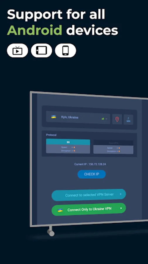 VPN Ukraine is a fast and free of charge VPN service trusted by over 500,000 users. Thanks to our app, you'll get a Ukrainian IP address with a single click or regain access to websites and applications blocked in Ukraine. Secure and confidential connection is ensured by OpenVPN connection technology featuring a 2048-bit key generated with OpenSSL or by an even faster Shadowsocks connection.