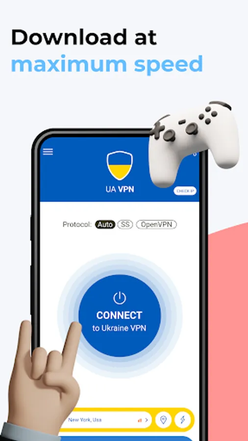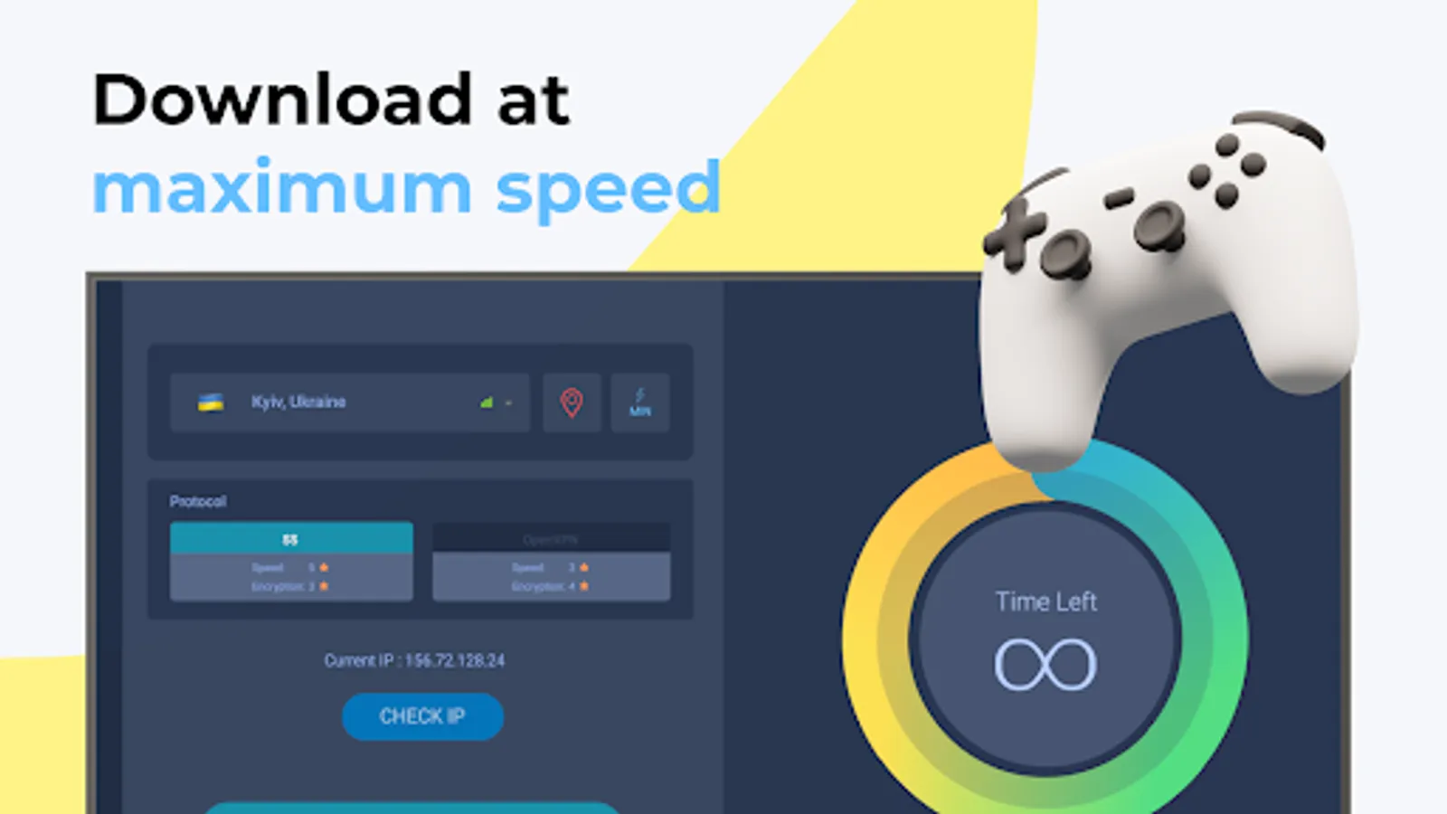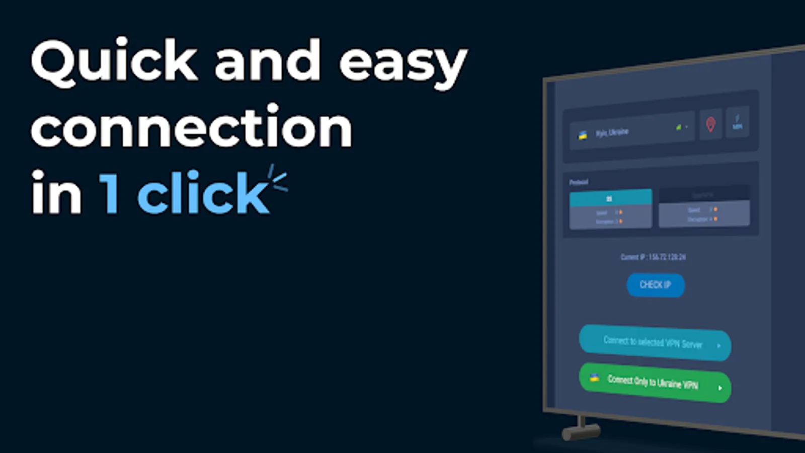 + As a matter of convenience, there are two separate connection buttons. The 1st instantly connects to a Ukrainian VPN, while the 2nd establishes connection to a VPN selected from the list. It's as easy as pie. If you need to unblock certain websites, just select a server in another country and connect to it. If you need to get a Ukrainian IP, connect to a VPN server in Ukraine at the click of a button.