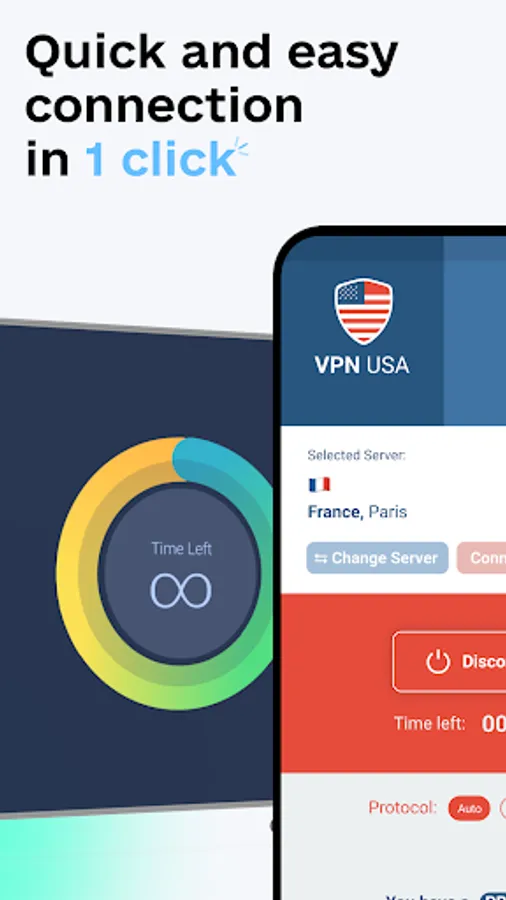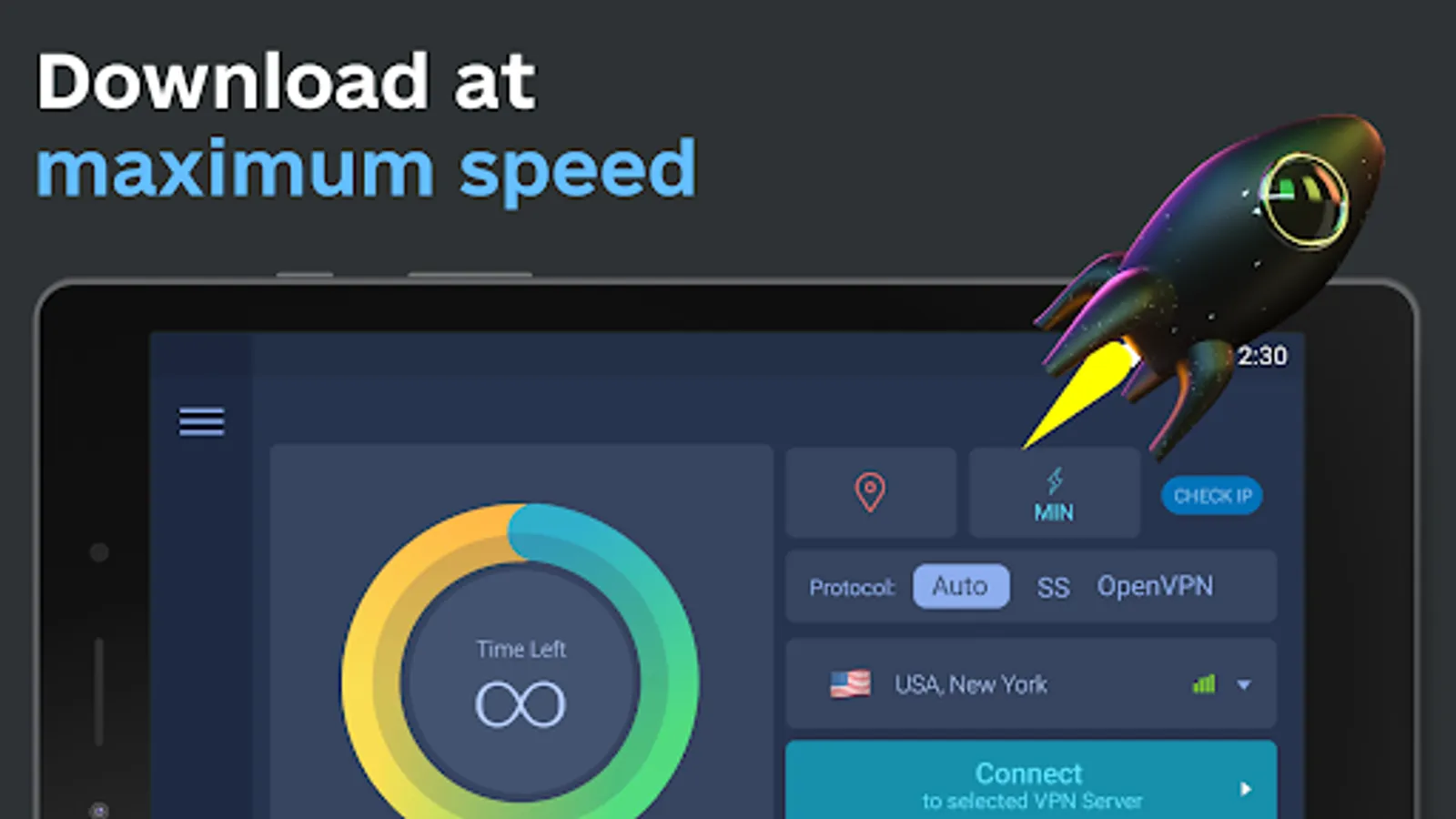 Vpn USA allows you to get a USA IP in one click and unblock access to restricted sites and applications. The secure and anonymous connection provides OpenVPN connection technology with OpenSSL key 2048 bits. Quick connection – Shadowsocks