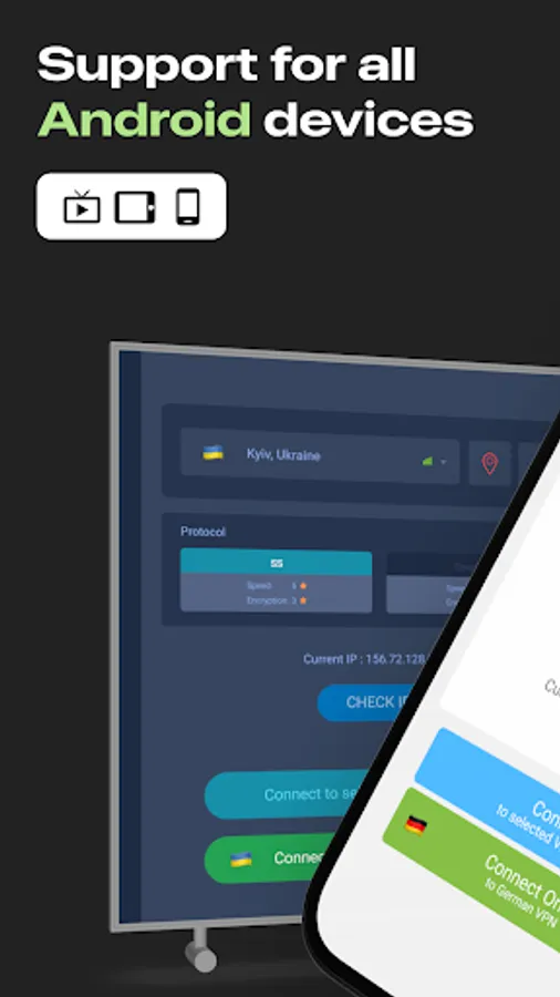 + For your convenience, we introduced two separate connection buttons. The first connects to a selected VPN in the list. The second connects directly to a Vietnam VPN. It's that simple. In case you need to change IP address, just select a server in some other country and establish a connection. In case you need to get a Vietnam IP address, just connect to a Vietnam VPN server in one click.