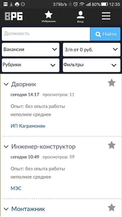 Separate collections include such popular headings as work without experience, work on a rotational basis and other proposals of employers.
