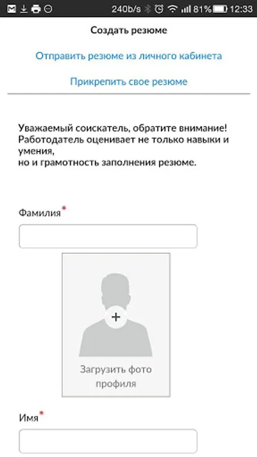 For your convenience, you can quickly create a resume on the site that will attract interested employers.