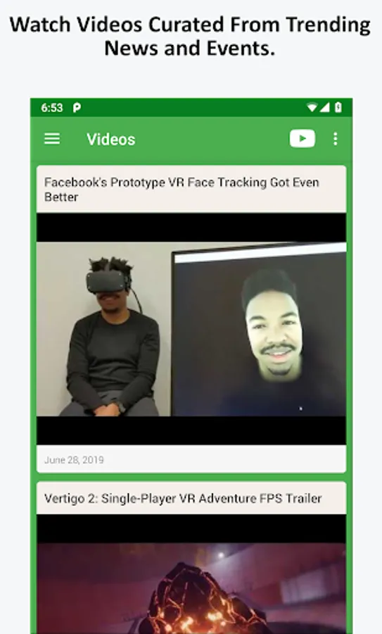 Watch streaming Virtual Reality videos based on topics that have been curated from trending VR news articles and events using our proprietary process.