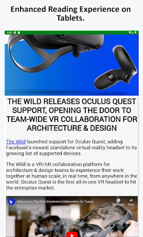 Simple and easy to use, VR News is the most solid and robust app available to Virtual Reality fans using Android phones and tablets.