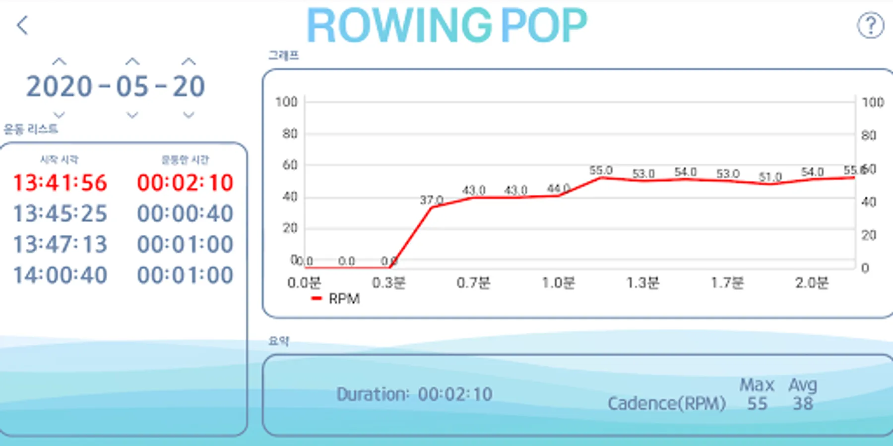 When you finish the exercise, press the X in the pop-up window to return to the original app. If you click the graph, you can check your recorded detailed exercise in a graph.