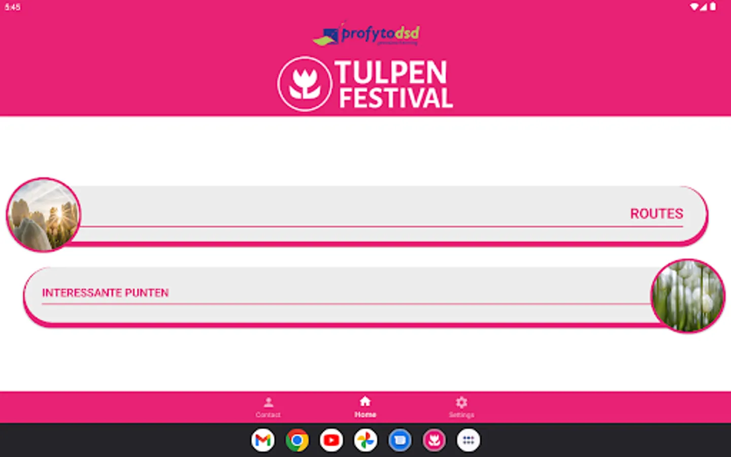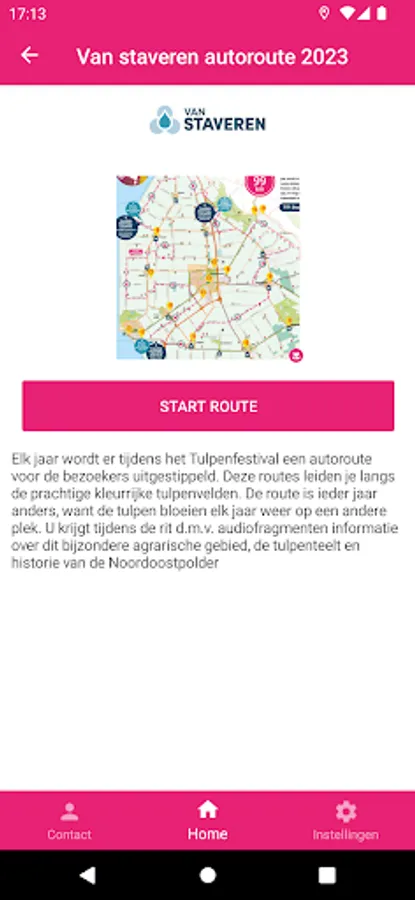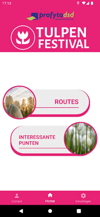 With the tulip festival app you will receive nice information about the route, tulip cultivation and the NOP while driving the route. As soon as the route has been started from the app and there is an information point nearby, you will be notified. The app uses the location of your phone for this.