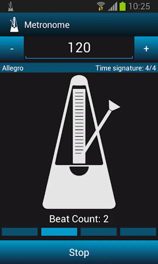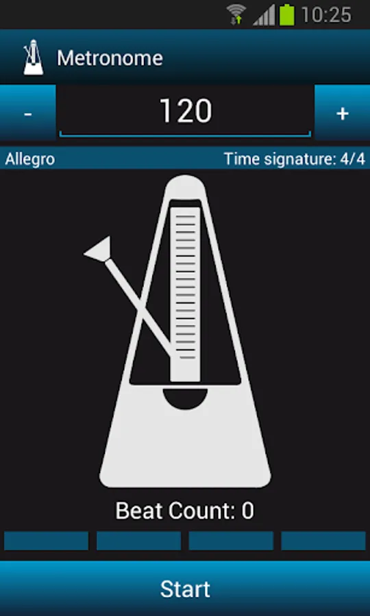 A visual metronome with plenty of settings and extra functionality. This app has an animated metronome with a wide tempo range (10 - 400 BPM), options to set time signature, a beat indicator which indicates the current beat corresponding to the selected time signature, and the ability to let the metronome keep playing in the background.