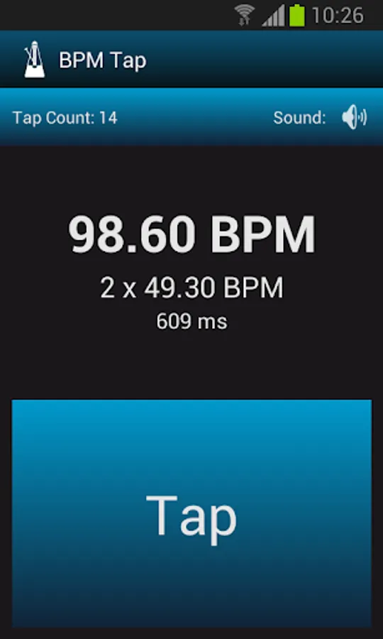 Tap the tempo of a song and get an estimated BPM. A tap sound is played to make it easier to stay on beat.