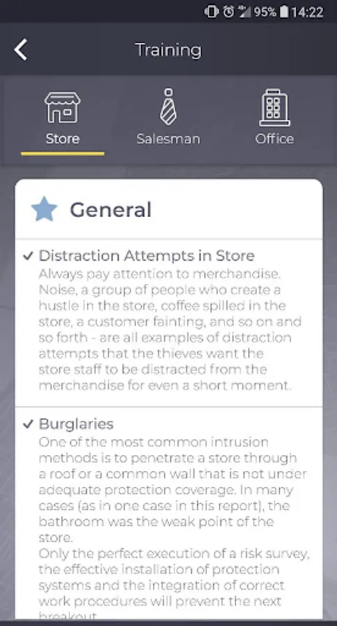 • Train your employees how to secure diamonds and jewellery at exhibitions, stores, offices and on persons.
