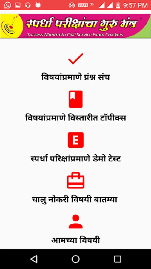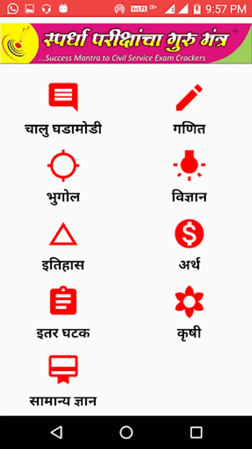 This Exam Engine intended for those who are preparing for MPSC, Police Bharati, All Civil Service Exams, Staff Selection Exam, Krushi Seva, Talathi, Tahsildar, Shikshan Sevak like all Competitive Exams.