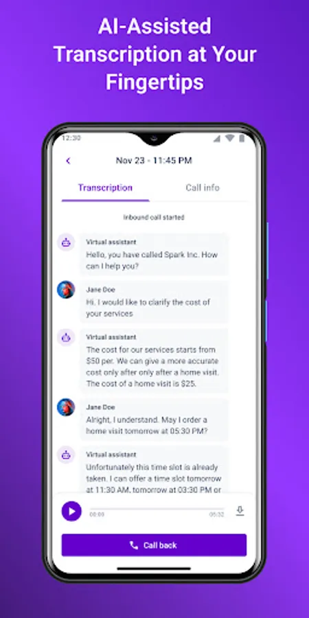 With our app, you can say goodbye to missed calls and unwanted spam. Our advanced AI technology can automatically answer calls, schedule meetings and block unwanted calls, all while providing a personalized touch to your customer service.