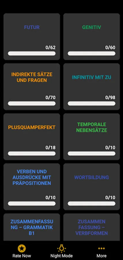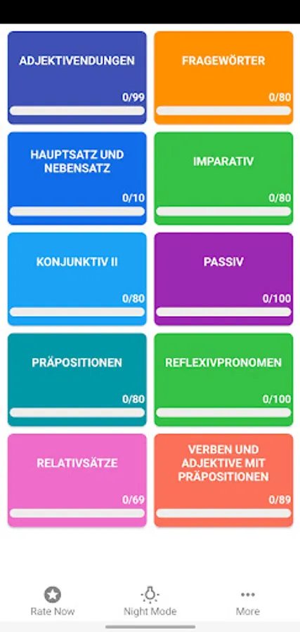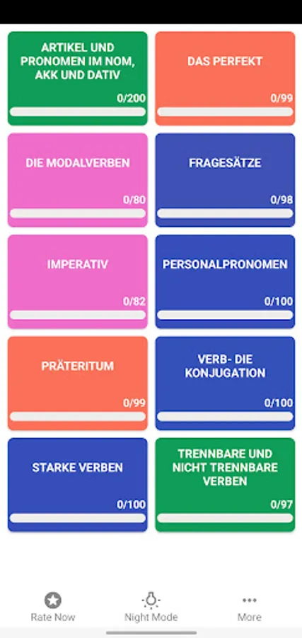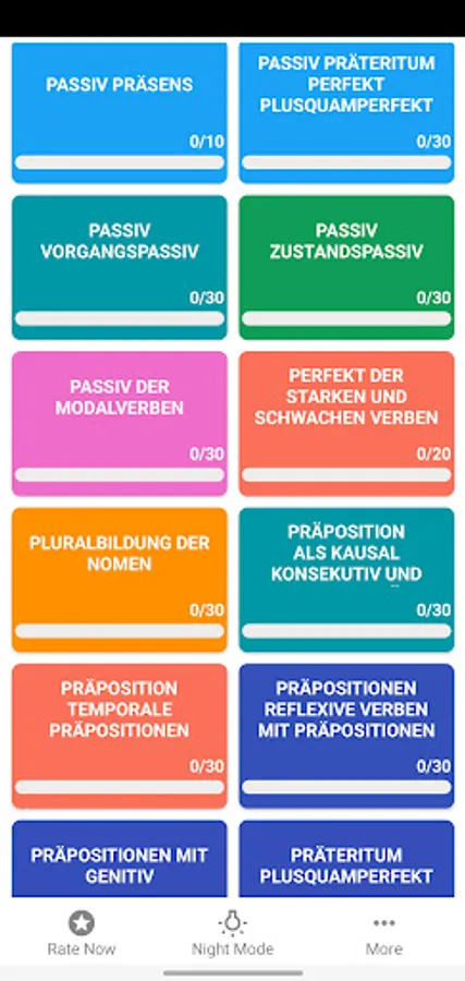 💡 Comprehensive Grammar Topics: From verb tenses (past, present, and future) to German articles (der, die, das, and no articles), irregular verbs, verb conjugation, and passive voice – our app covers all essential German grammar topics.