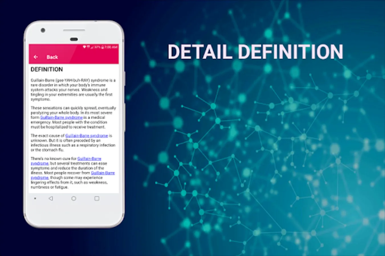 Completely Offline & FREE medical handbook app containing medical disorders & diseases with detailed definitions, symptoms, causes and treatment information.