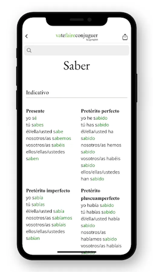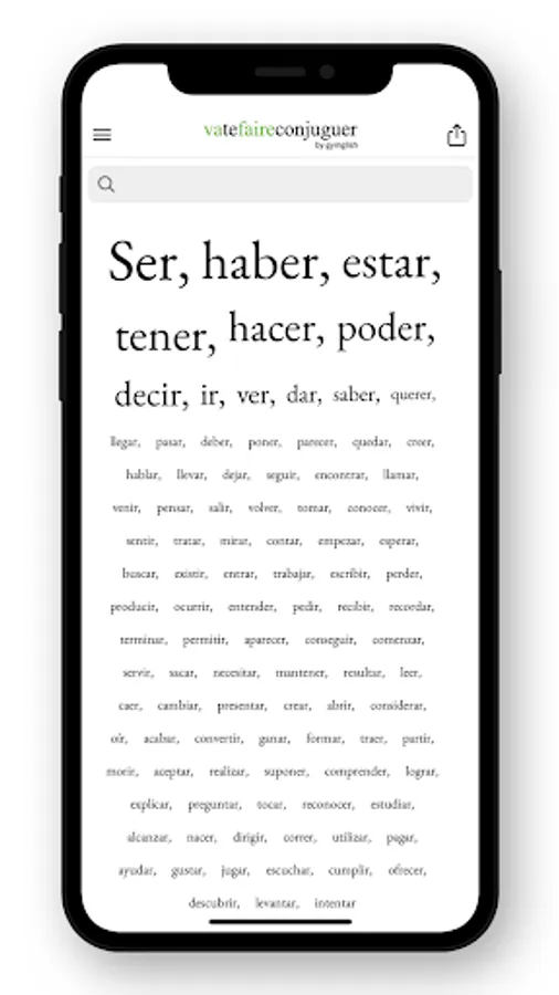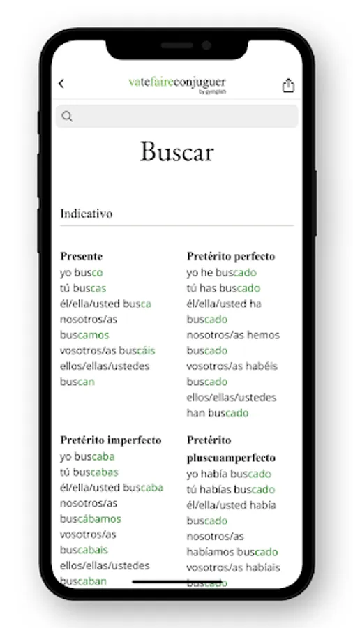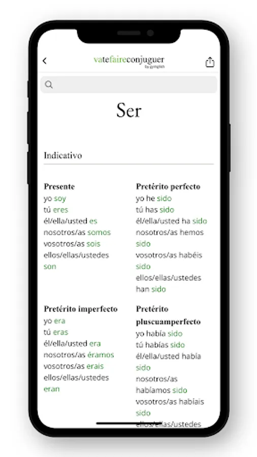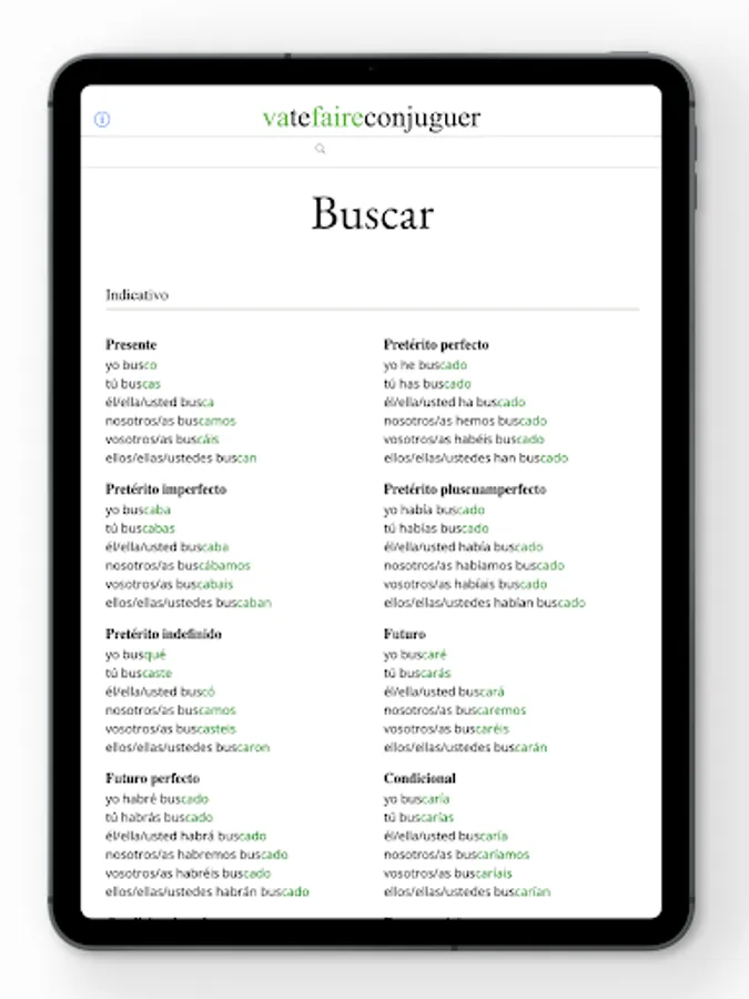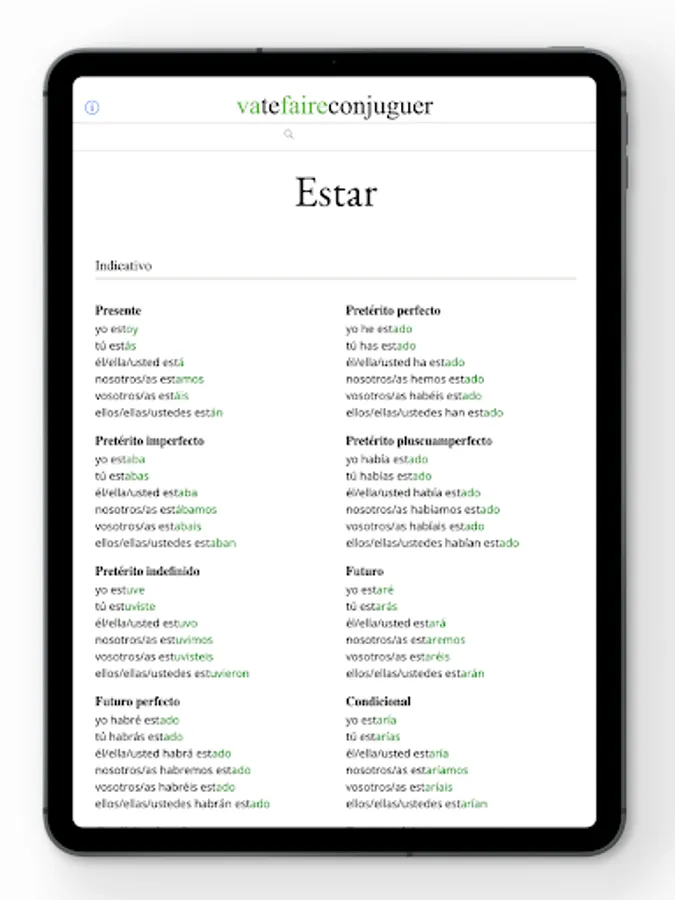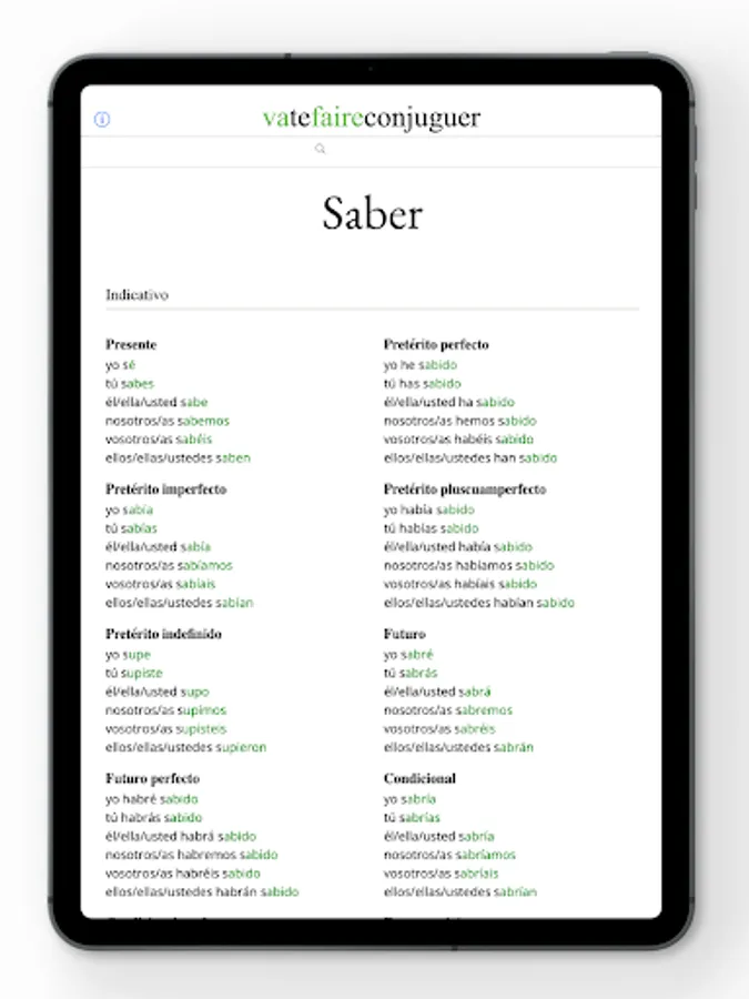 Vatefaireconjuguer, a free verb conjugation tool. Conjugate Spanish verbs with ease using this handy app.