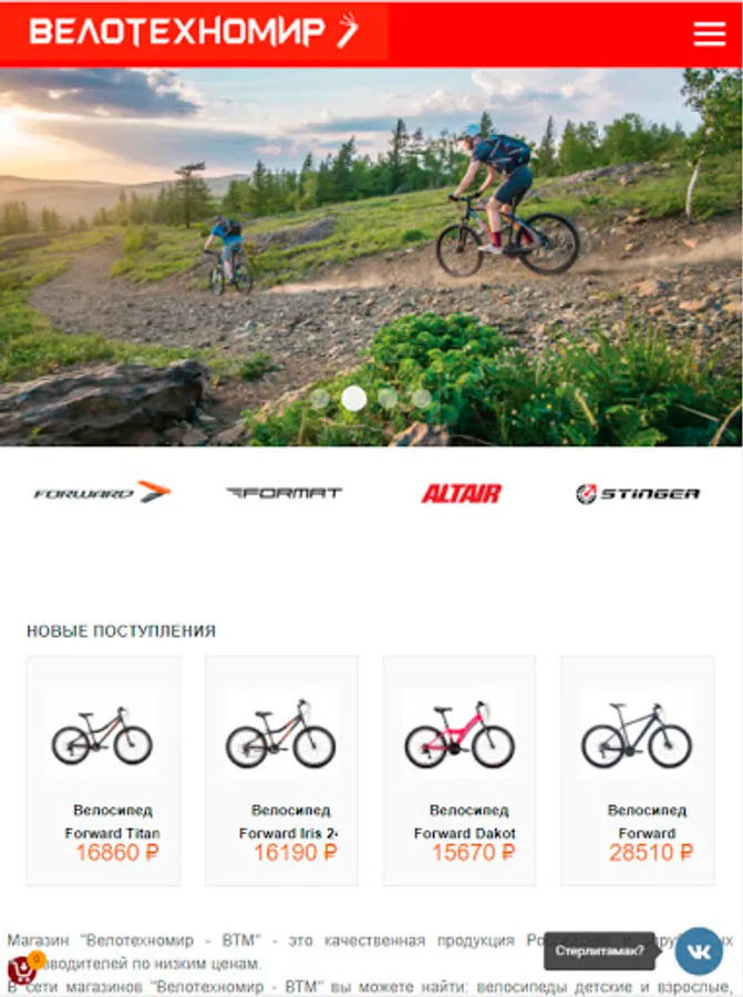 Velotekhnomir VTM store in Sterlitamak offers a wide range of goods for sports, active lifestyle, as well as tools, equipment, spare parts and components.