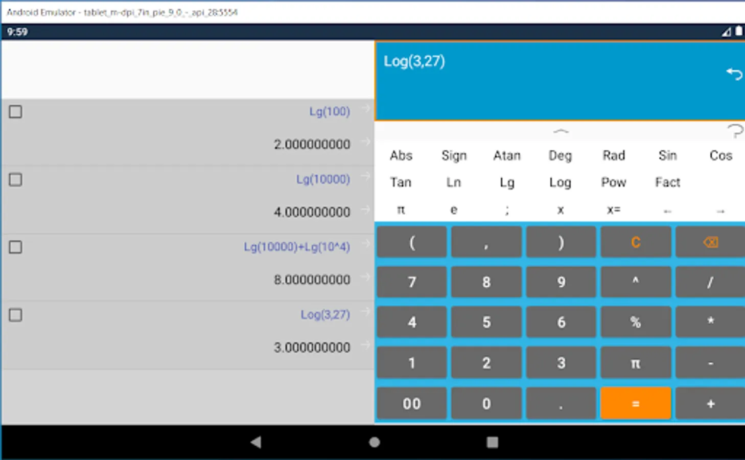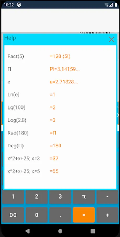 +Math functions: Abs, Sign, Atan, Deg, Rad, Sin, Cos, Tan, Ln, Lg, Log, Pow, Fact.