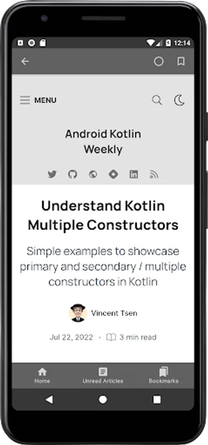 This app provides useful Android and Kotlin development article once a week based on my learning experience to become an Android Kotlin developer.