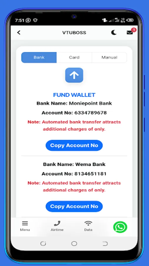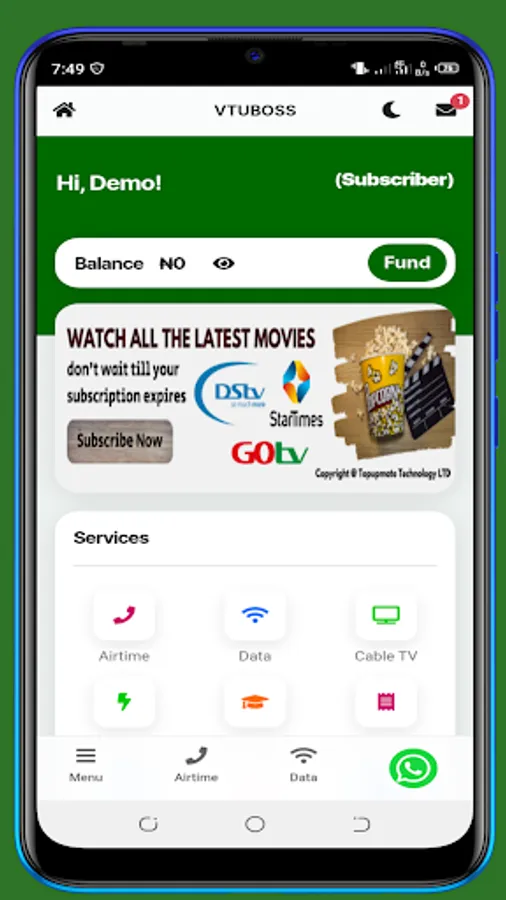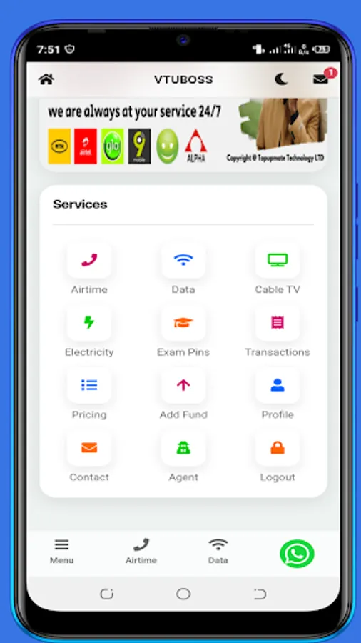 We offer instant recharge of Airtime,Databundle, CableTv, electricity bills payment,bulk SMS and many more.
